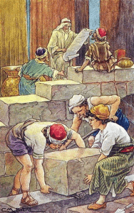 En wanneer Mozes zijn hand ophief, had Israël de overhand, maar wanneer hij zijn hand liet zakken, had Amalek de overhand. Toen de handen van Mozes zwaar werden, namen zij